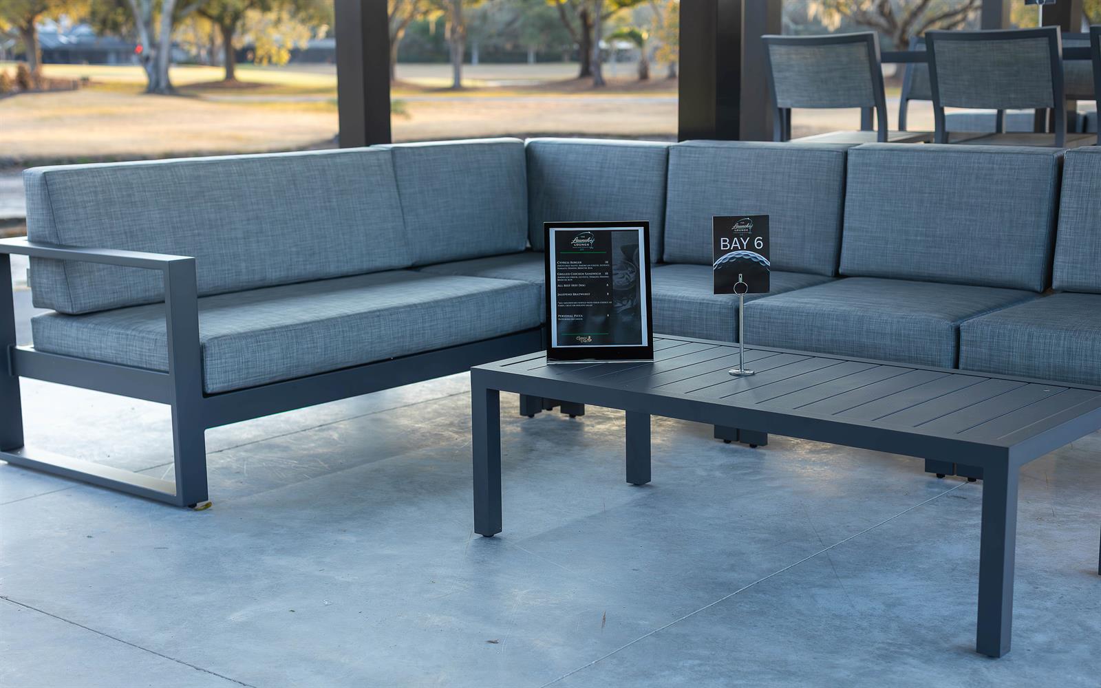 comfortable seating, music, televisions, and full grill and beverage service,