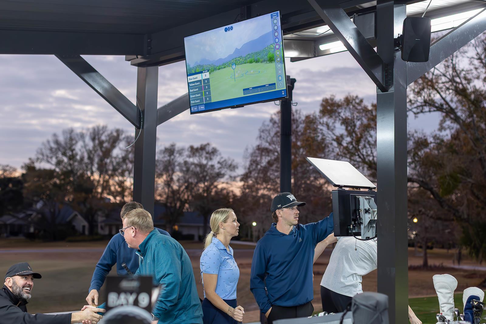 displayed in real time on large monitors in each bay. Players receive precise